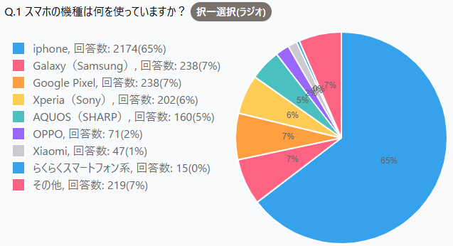 iPhoneが65%という結果は、